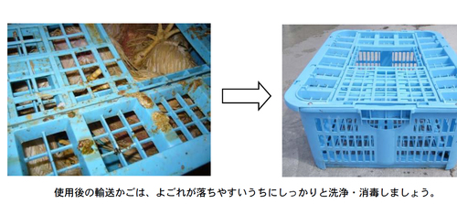 清潔なカゴの写真を掲載することにより、洗浄・消毒の励行の趣旨は生産者等に伝わると考えられますので、頂いたご意見をふまえ、鶏肉の生産衛生管理ハンドブックから該当の写真を削除しました。(10月5日)