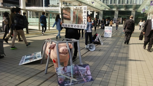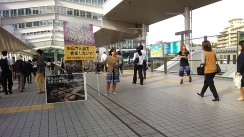 日本ハム東京支社前で、定期的に妊娠ストール廃止活動を行っています。